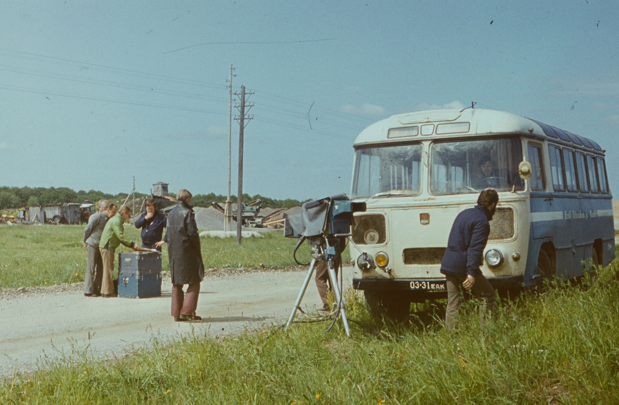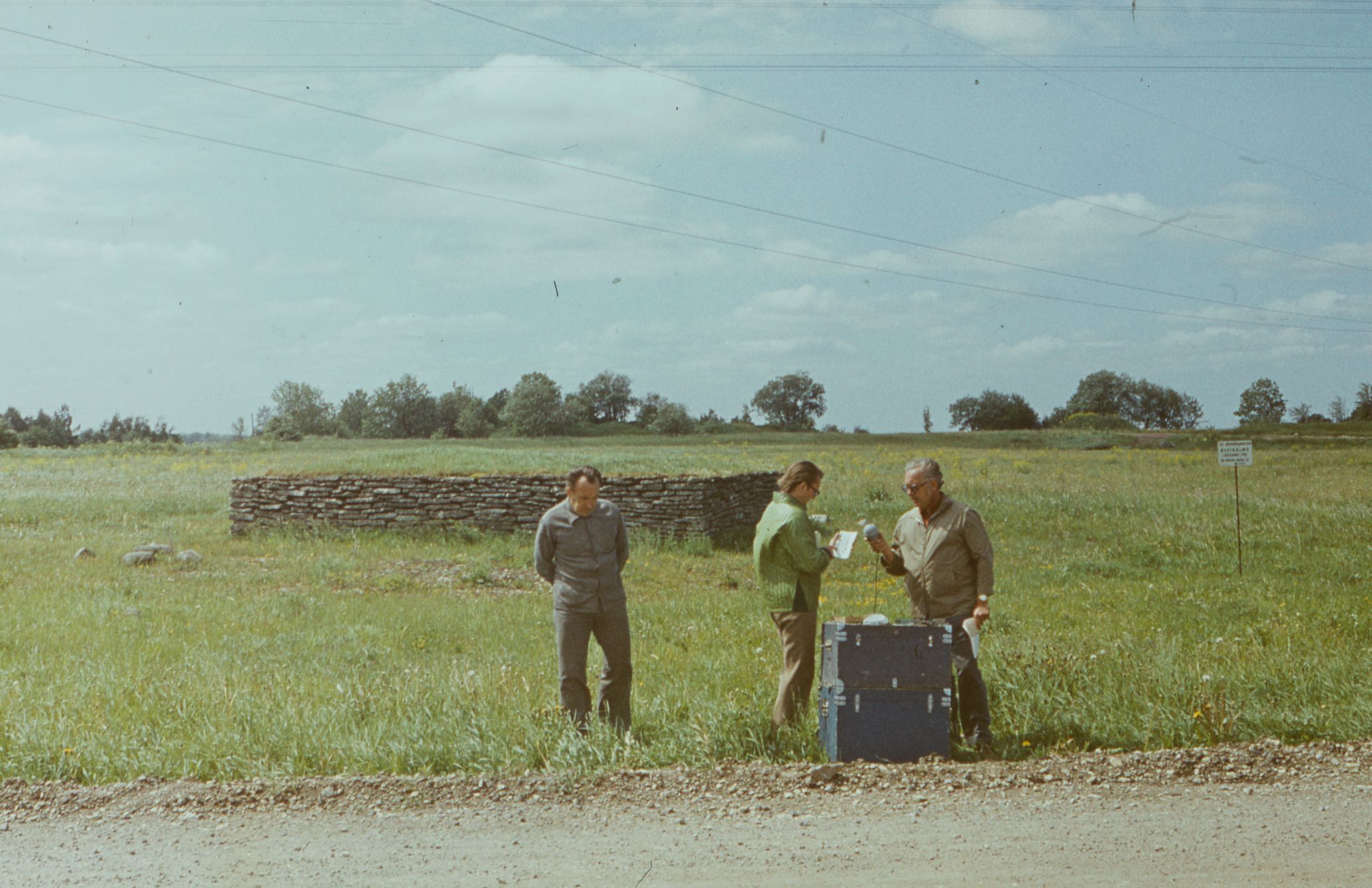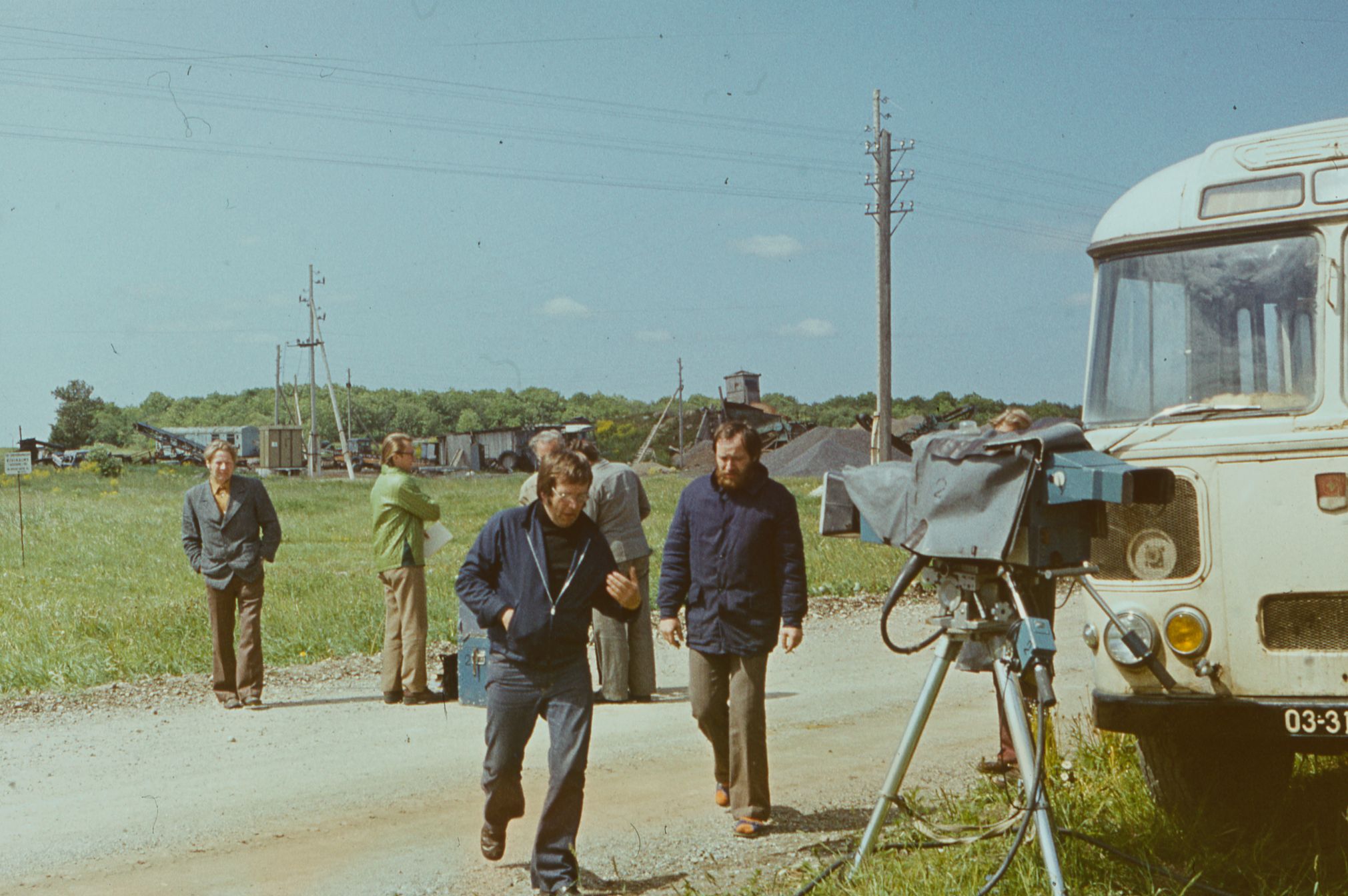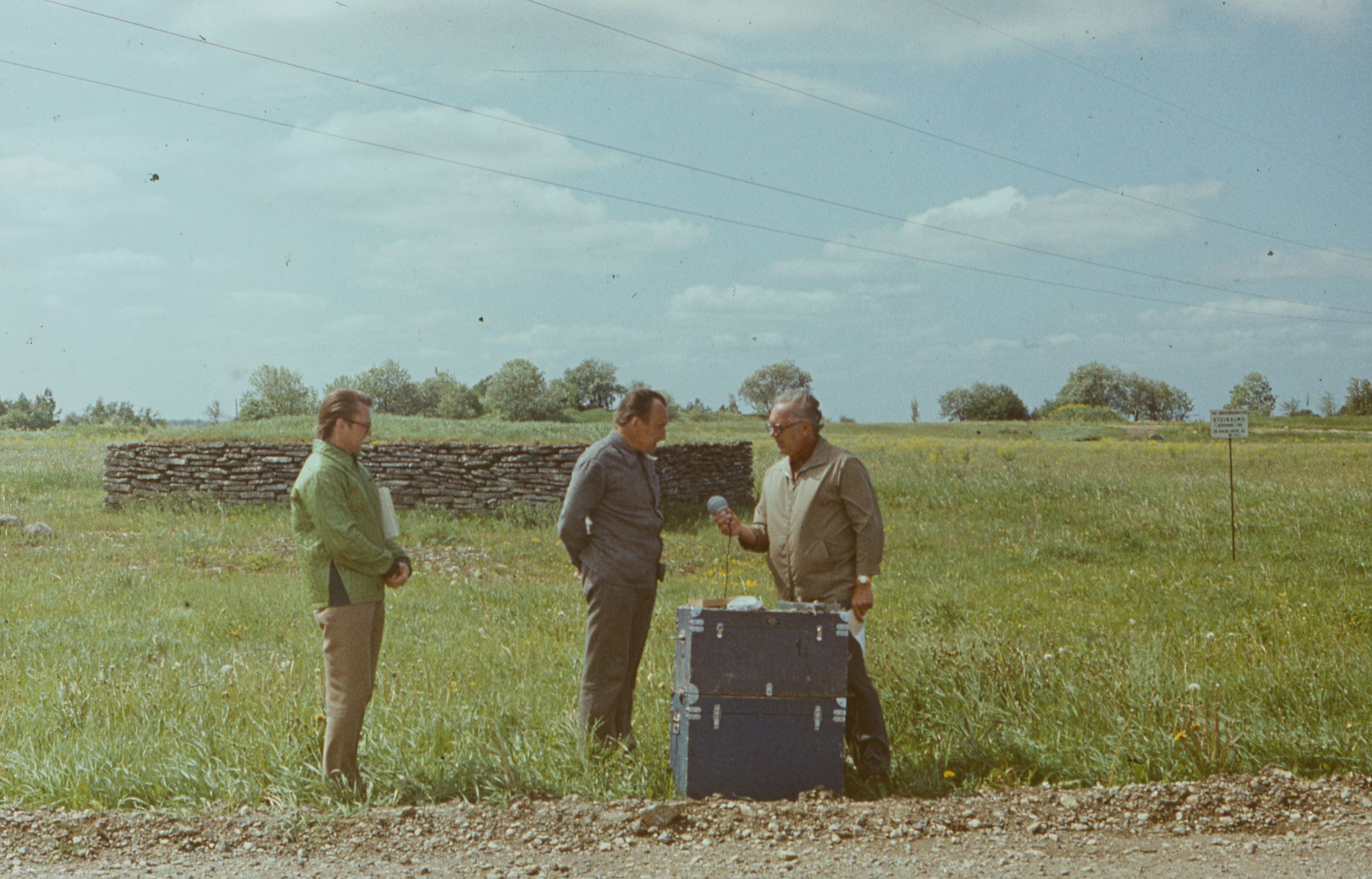 Eesti Televisiooni võttegrupp Lehmja-Loo tarandkalmel.