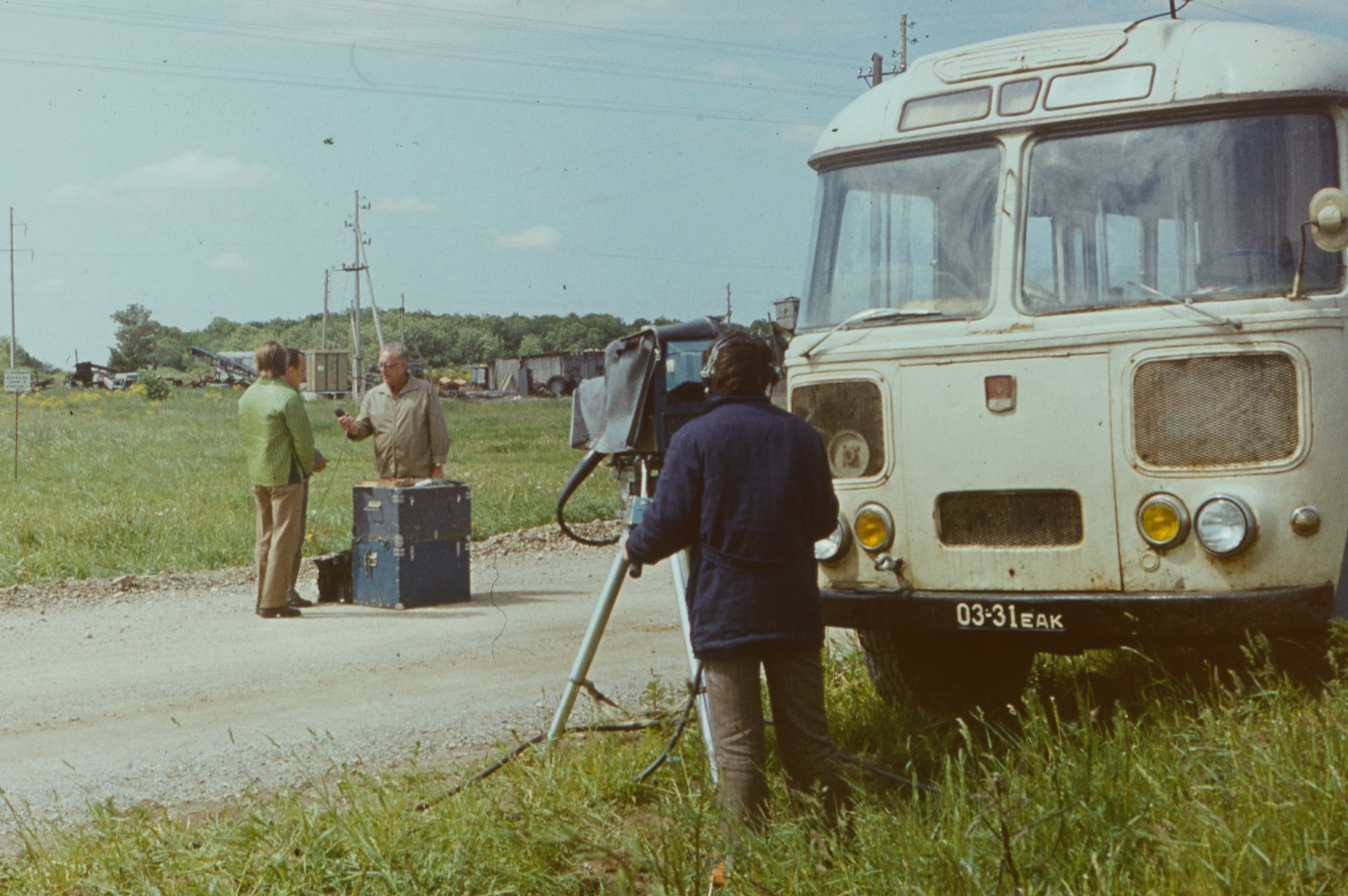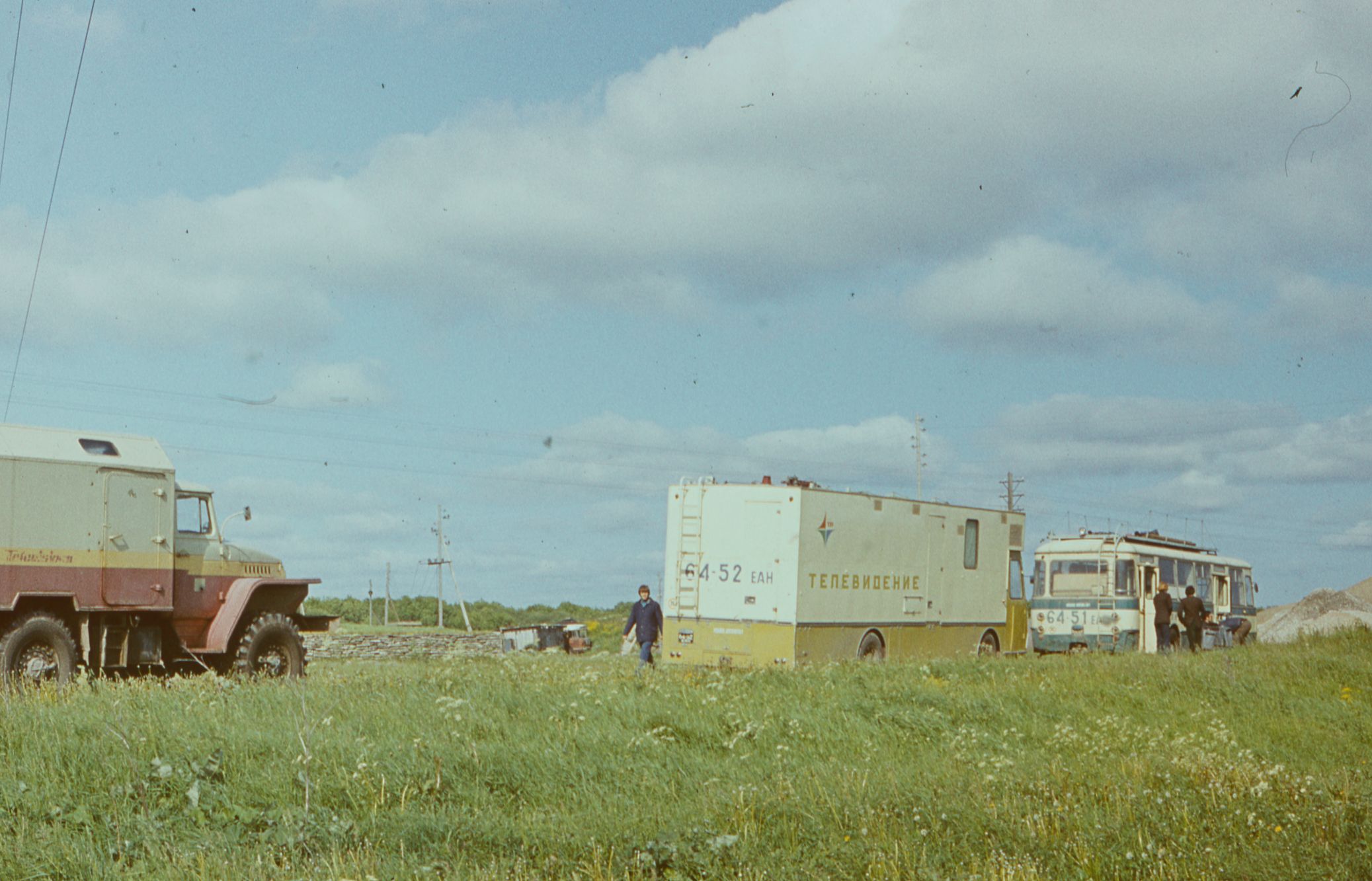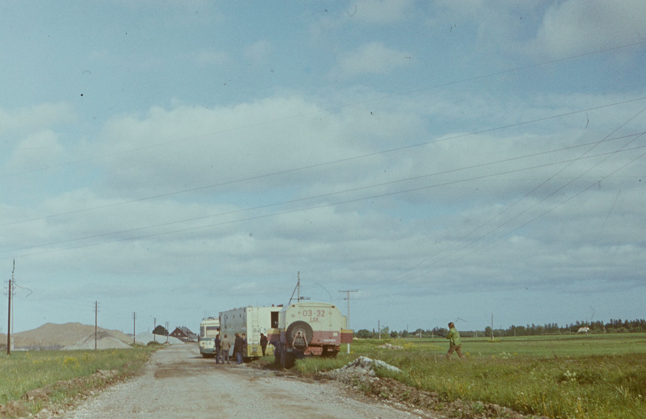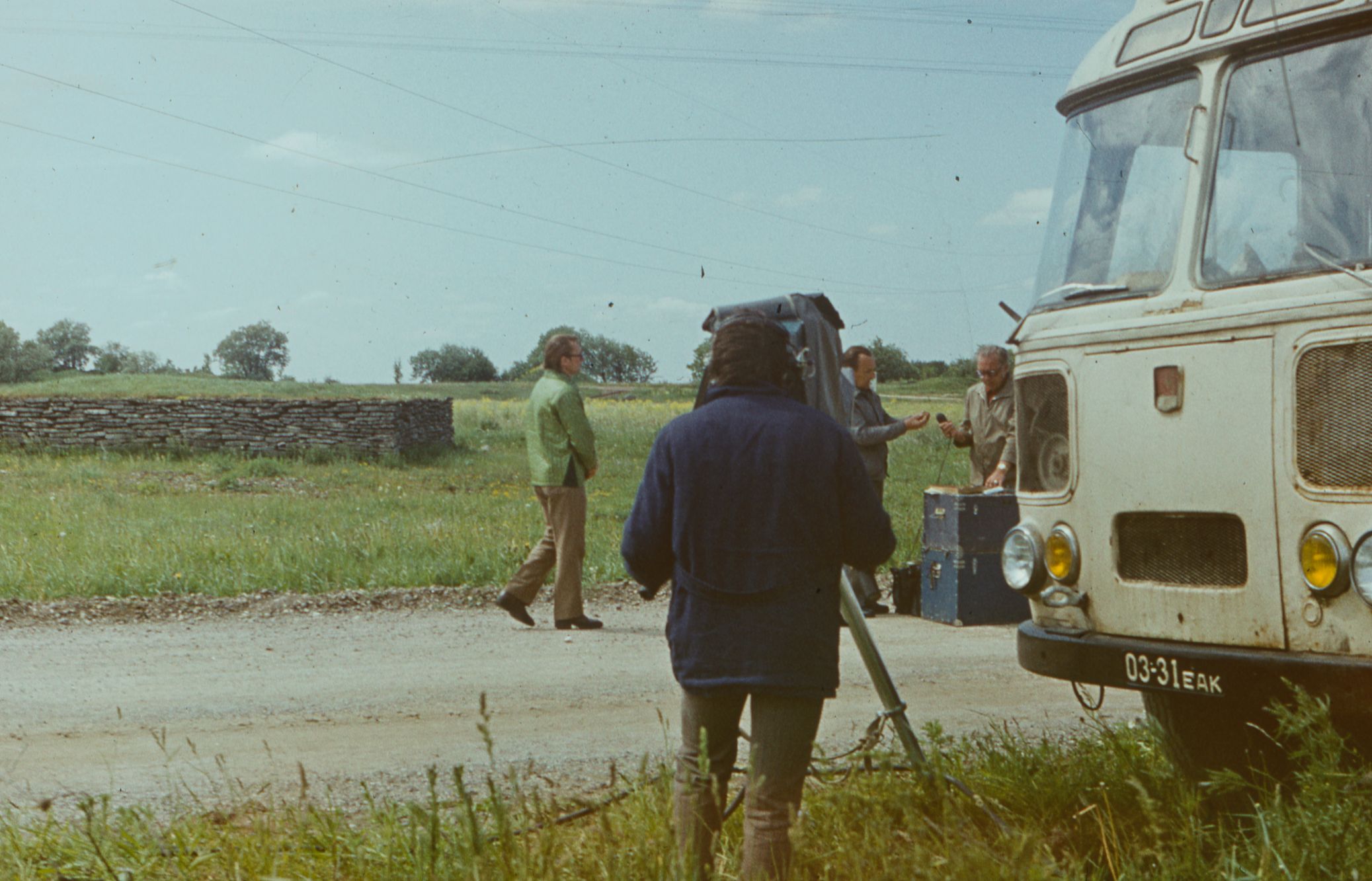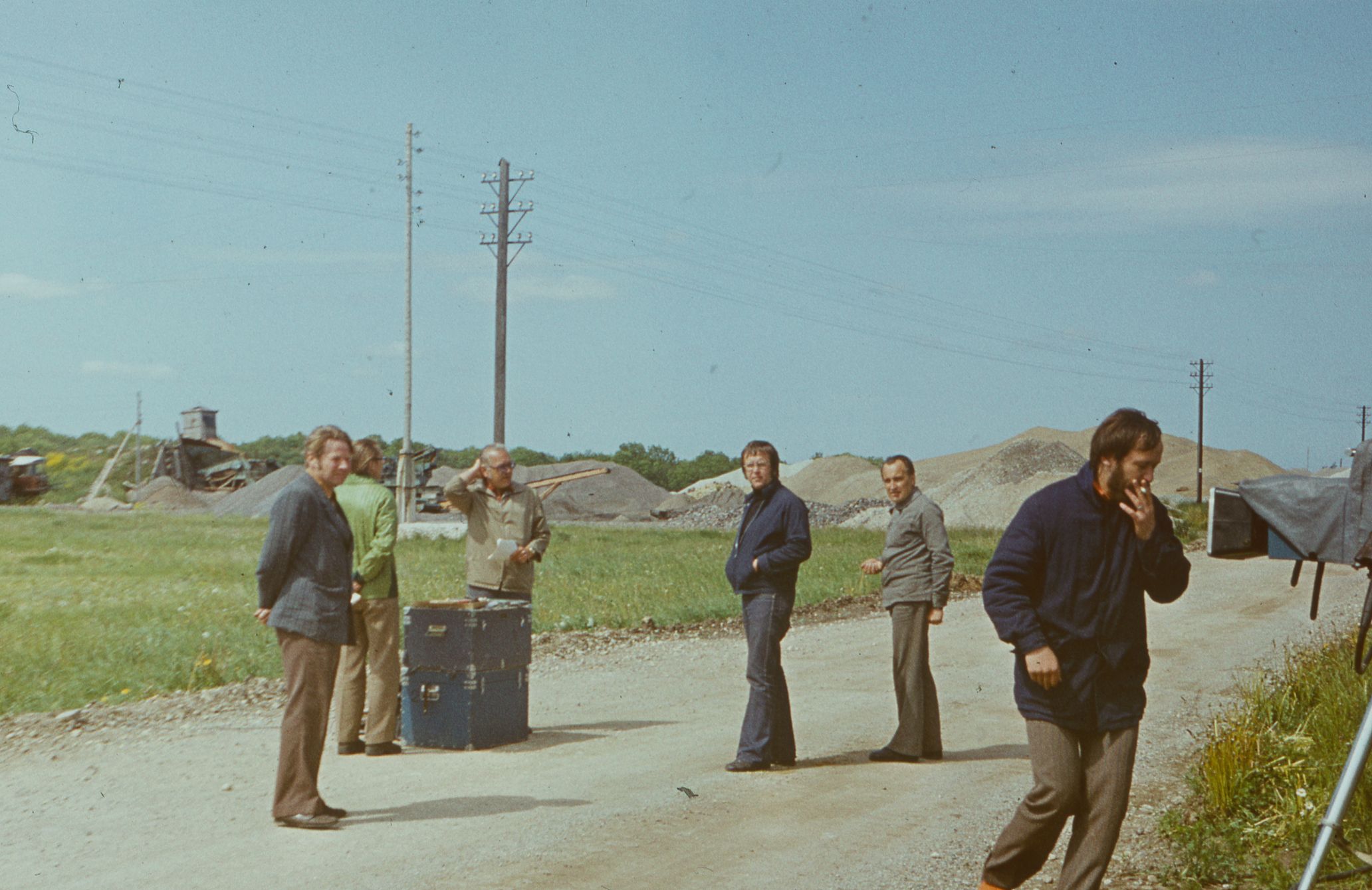 Eesti Televisiooni võttegrupp Lehmja-Loo tarandkalmel.