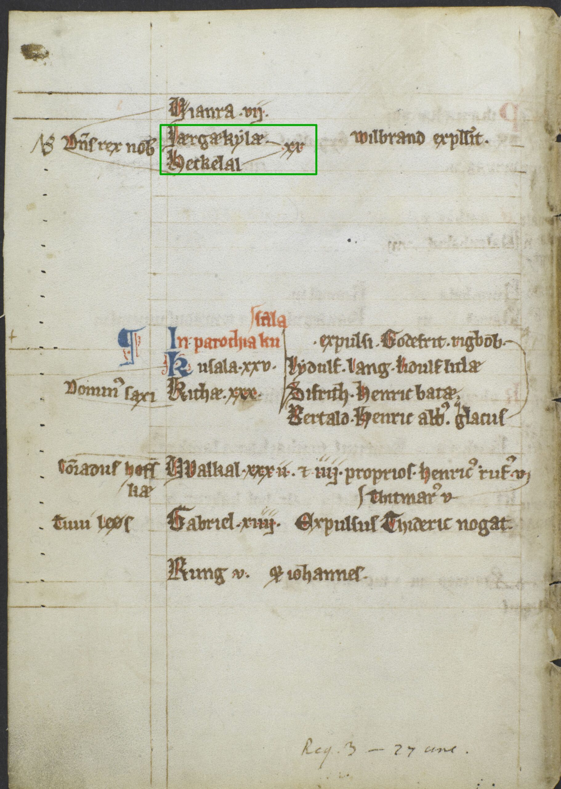 Jærgækylæ – Järveküla Taani Hindamise raamatus 1241.a lk. 47v.