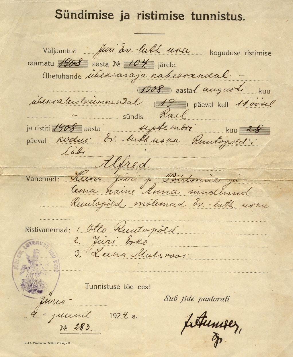 Vallaametnik Alfred Põldmäe teenistustoimik Tallinna Linnaarhiivist TLA.884.1.154 43 MB PDF